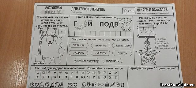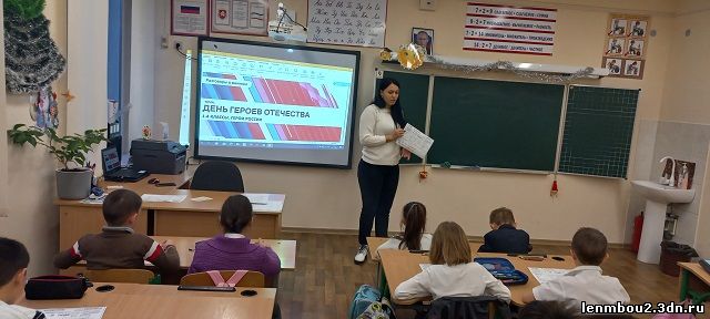 Обучающиеся 2-А класса обсуждали вопросы «Кто такой герой?», «Какими качествами он обладает?», составляли «портрет героя», просмотрели видеоролики в формате интервью с Героями России Дмитрием Сергеевичем Перминовым, получившим высокое звание в 1999 году за участие в контртеррористической операции на территории Республики Дагестан, летчиком – космонавтом Антоном Шкаплеровым, Денисом Проценко, главным врачом городской клинической больницы No 40 Подводя итоги занятия, учитель Шумская Е. Ю. вместе с ребятами сделали вывод, что герои – это очень мужественные и решительные люди, которые могут преодолеть страх и, даже рискуя своей жизнью, прийти на помощь другому, защитить, выручить, спасти. И делают они это ради других, а не для собственной славы. Настоящий герой — это человек, который ставит интересы своей страны, интересы других людей выше своих. Герой – человек, который своим поступком или всей своей жизнью показал пример служения Родине. Герои Отечества – это люди разных эпох, возрастов и разных профессий, ведь «героями не рождаются – героями становятся». В ходе разговора второклассники назвали героя, учителя физической культуры Ибраимова Ш. М., который воспитывал у них качества: выносливость, ловкость, стойкость, формировал навыки здорового образа жизни. С сентября Шевкет Мусретович находится в зоне специальной военной операции, выполняя священный долг по защите Отечества. Ребята просили передать Шевкету Мусретовичу, что за ним очень скучают и пожелали скорейшего возвращения с Победой. В завершение беседы прозвучал «Гимн Героям Отечества».
