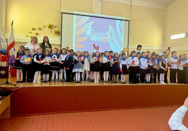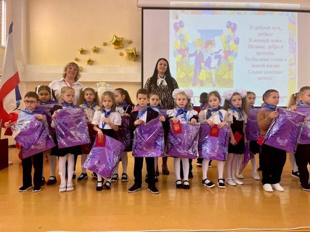 Первоклассникам пришлось не только отгадать загадки, но и проявить свою сообразительность и фантазию, петь песни, читать стихи и даже танцевать. Со всеми испытаниями они справились на «отлично». Все присутствующие на празднике: родители, учителя, ученики убедились - в школу пришли талантливые дети! С знаменательным событием первоклассников поздравила заместитель директора по учебно-воспитательной работе Бендо Н.Н. В завершение праздника первоклассники произнесли клятву и получили свой первый школьный документ – диплом настоящего ученика. Кульминацией праздника стало посвящение в «Орлята России». Обучающиеся 7-А класса- участники «Движения Первых» повязали галстуки малышам, передавая им эстафету добрых дел и активной школьной жизни. Это торжественное мероприятие особенно важно для ребят, поскольку открывает двери в Страну Орлят, в которой их ждёт много нового, познавательного, интересного и полезного. Вступая в "Орлята России", дети принимают на себя обязанности своим поведением соответствовать этому гордому званию. Этот памятный день останется надолго в сердцах первоклашек. Мальчишки и девчонки! Доброго вам пути в мир Знаний и Страну Орлят! Добро пожаловать в нашу большую и дружную семью, название которой ШКОЛА!