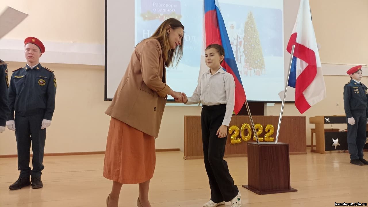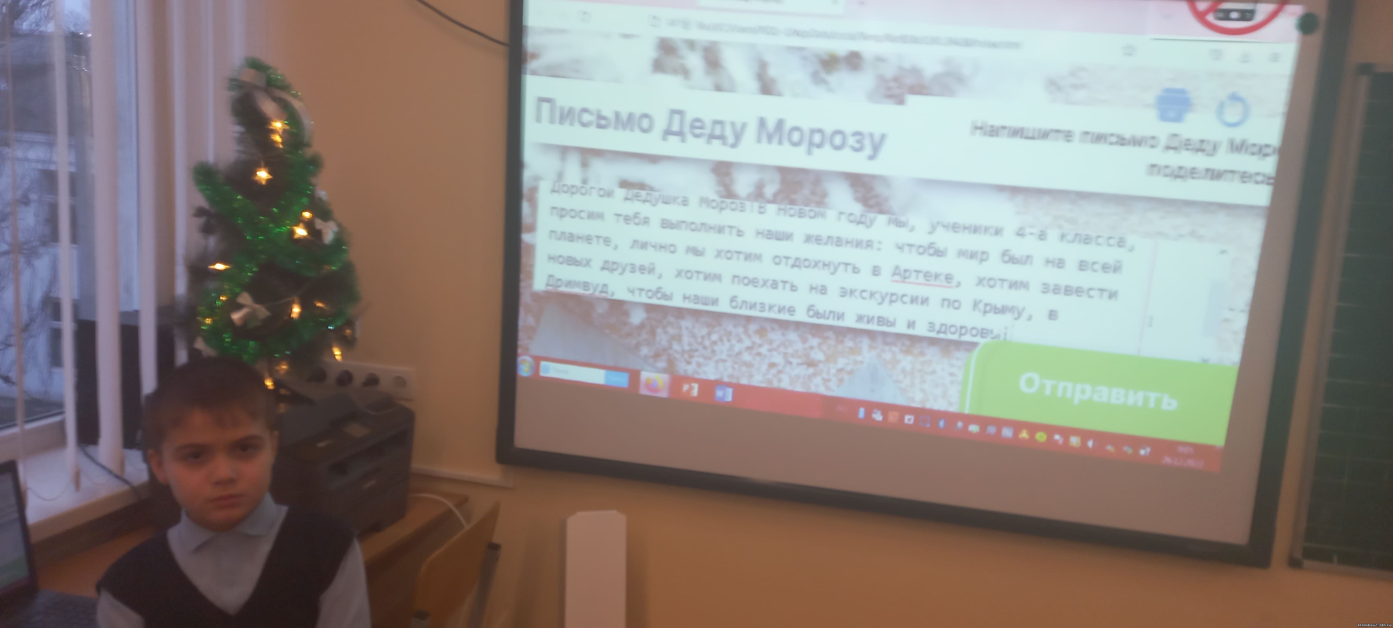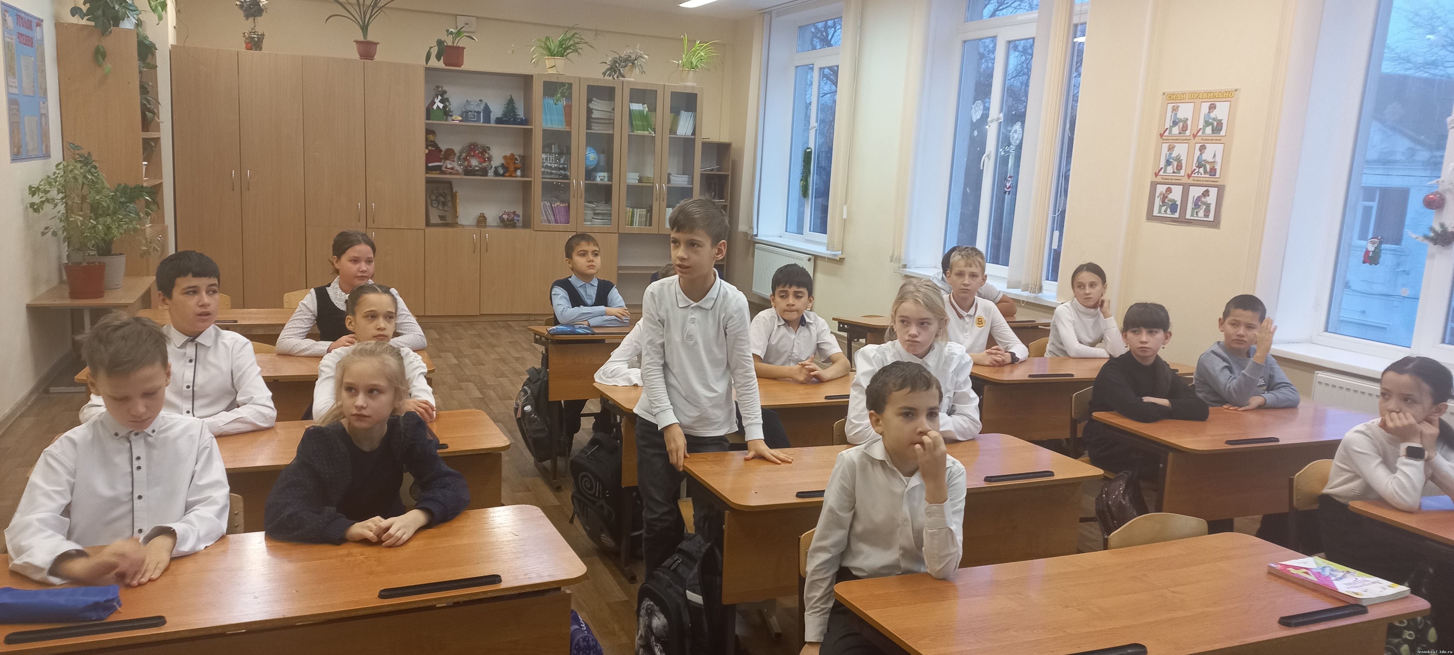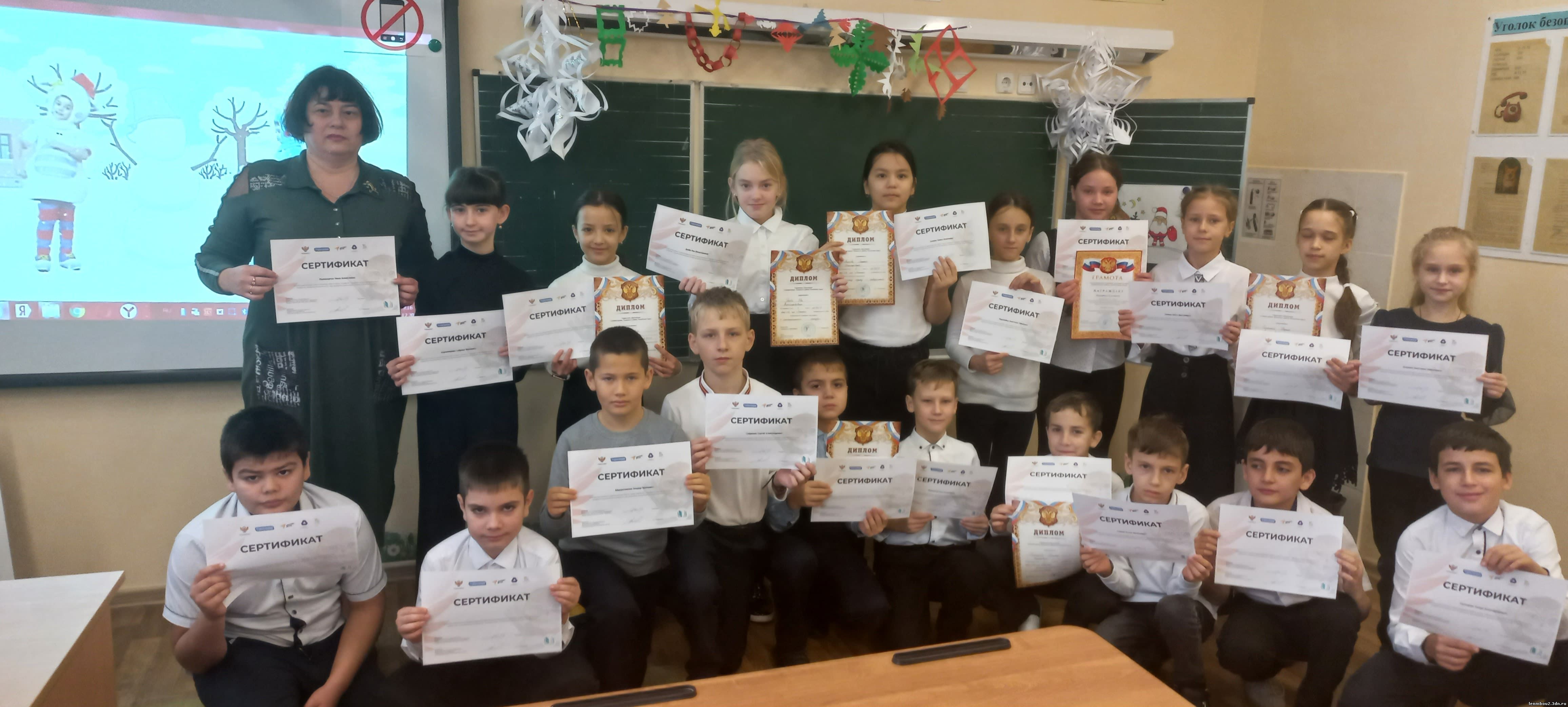 По русскому языку победителями стали: Костина Ольга, Полищук Аделина, Сабуренко Вероника, Биюкчанов Насурла, Усеинова Риана, Алиева Эмине, по математике – призерами признаны: Токарев Руслан, Смилик Дарья, Дюба Ева. После линейки во всех классах прошли классные часы «Разговоры о важном», посвященные празднику Новый год. Это было, наверное, самое волшебное и сказочное занятие. В 4-А классе обучающиеся с классным руководителем Паламарчук Н. А. говорили о семейных традициях празднования Нового года, прослушали Обращение Министра просвещения РФ С. С. Кравцова к школьникам страны, просмотрели видео об интересных фактах Нового года, говорили о своих желаниях и мечтах. Отрадно, что многие, наряду с мечтой получить много конфет, любимую игрушку, говорили о желании, чтобы все были здоровы, счастливы, чтобы скорее закончилась специальная военная операция и наши защитники вернулись домой с победой, чтобы наше государство – Россия крепло и процветало. В конце занятия ребята вспомнили еще об одной традиции Нового года - написали и отправили коллективное письмо Деду Морозу, а в ответ получили сюрприз – новогоднее поздравление Дедушки Мороза. Состоявшийся классный час, последний в этом году. А в конце года принято подводить итоги и намечать планы на будущее. 4-А классу было чем похвастаться. Грамоты, дипломы, сертификаты, полученные ребятами за активное участие в различных интеллектуальных и творческих конкурсах – свидетельствовали о том, что год прошел интересно, полезно, увлекательно. Впереди ответственная работа – закончить успешно курс начального общего образования, а также получить звание «Орленок» в рамках реализации федерального проекта «Орлята России», участниками которого являются обучающиеся 4-А класса.